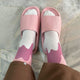"Selesa sangat sangat. Melantun jalan, sedap di kaki. Lembut je. Untuk yang mengandung, sakit tumit, sesuai laa. Tips dia, ukur kaki dulu. Saya amek 23' cm, ngam ngam dgn hujung selipar. Xda laa nampak selipar pinjam kaan. Saya pakai outdoor, herlok, segak. Janji kita selesa, 5🌟"